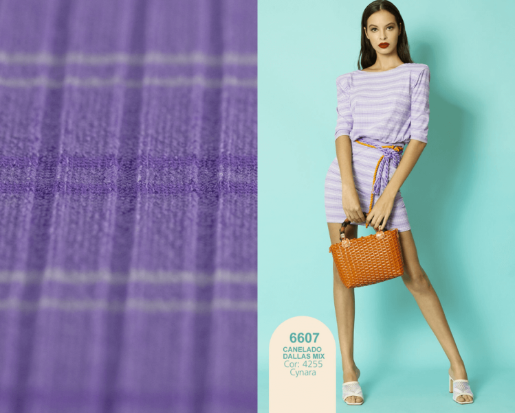 O artigo 6607 Canelado Dallas Mix é uma malha canelada listrada diferenciada, elaborada com poliéster, viscose e elastano. Produto contemporâneo de toque agradável ideal para moda feminina e juvenil. Indicado para compor peças de modelagens mais justas como vestidos e blusas.