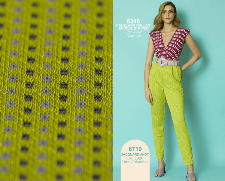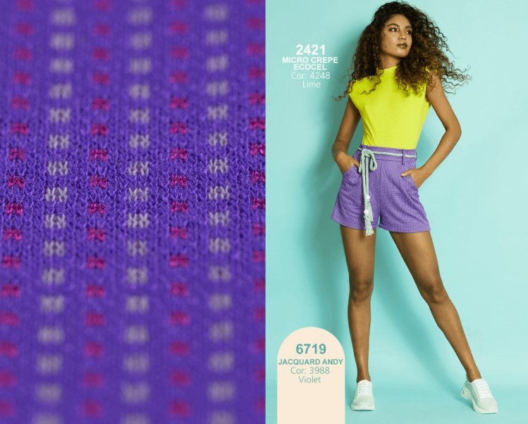 O artigo 6719 Jacquard Andy elaborado com poliéster em fio tinto, viscose e elastano traduz um visual moderno e diferenciado as peças. Ideal para moda feminina, é uma ótima opção para vestidos, saias, shorts, calças e blazers.